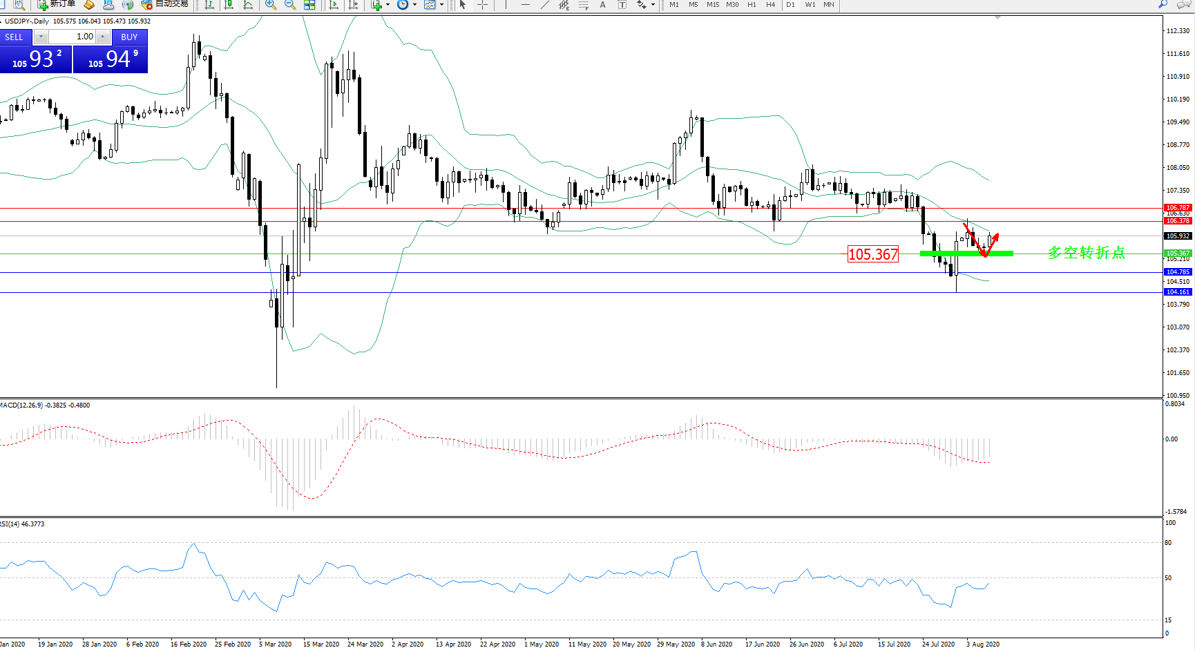 多空转折点:105.367