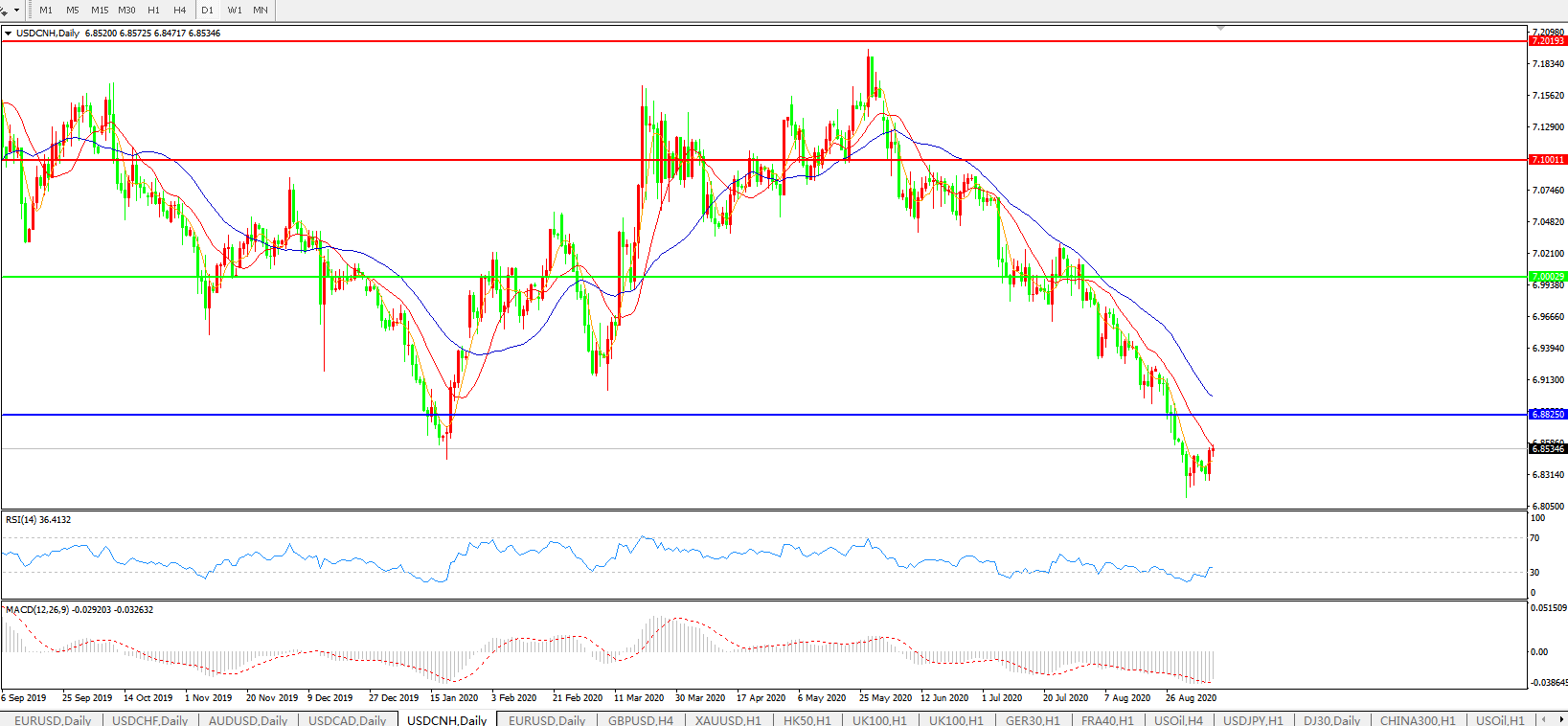 美元兑人民币USDCNH 日线图: