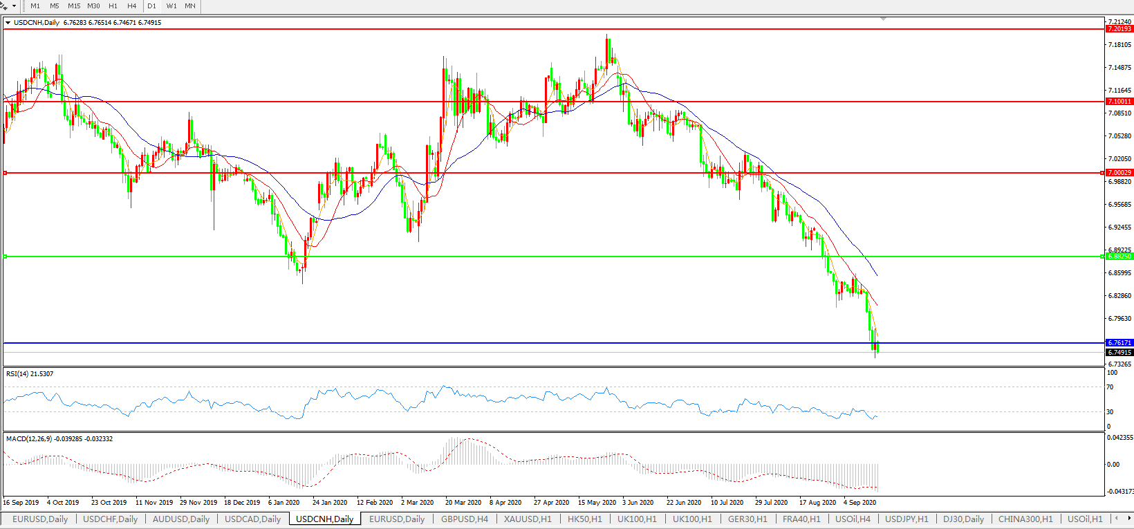 美元兑人民币USDCNH    日线图: