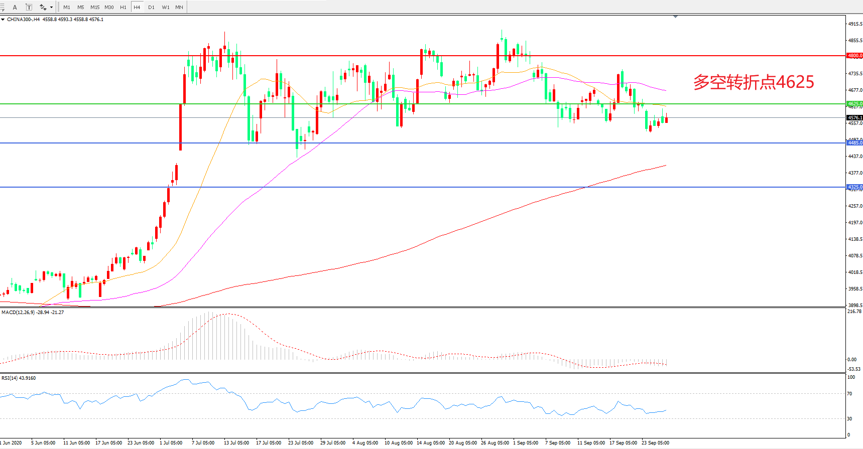 多空转折点:4625.00