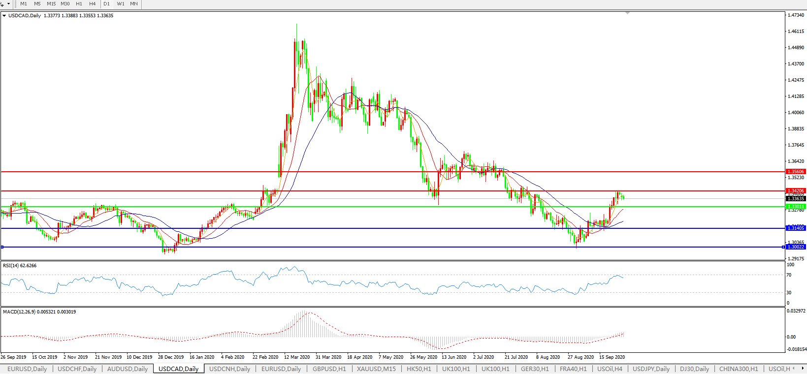 美元兑加元USDCAD    日线图: