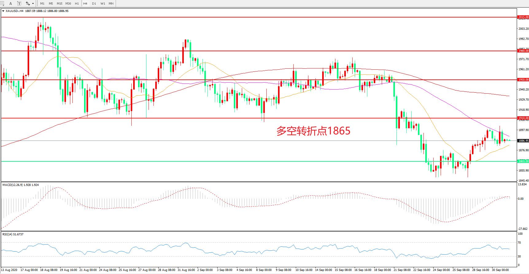 多空转折点:1865.00