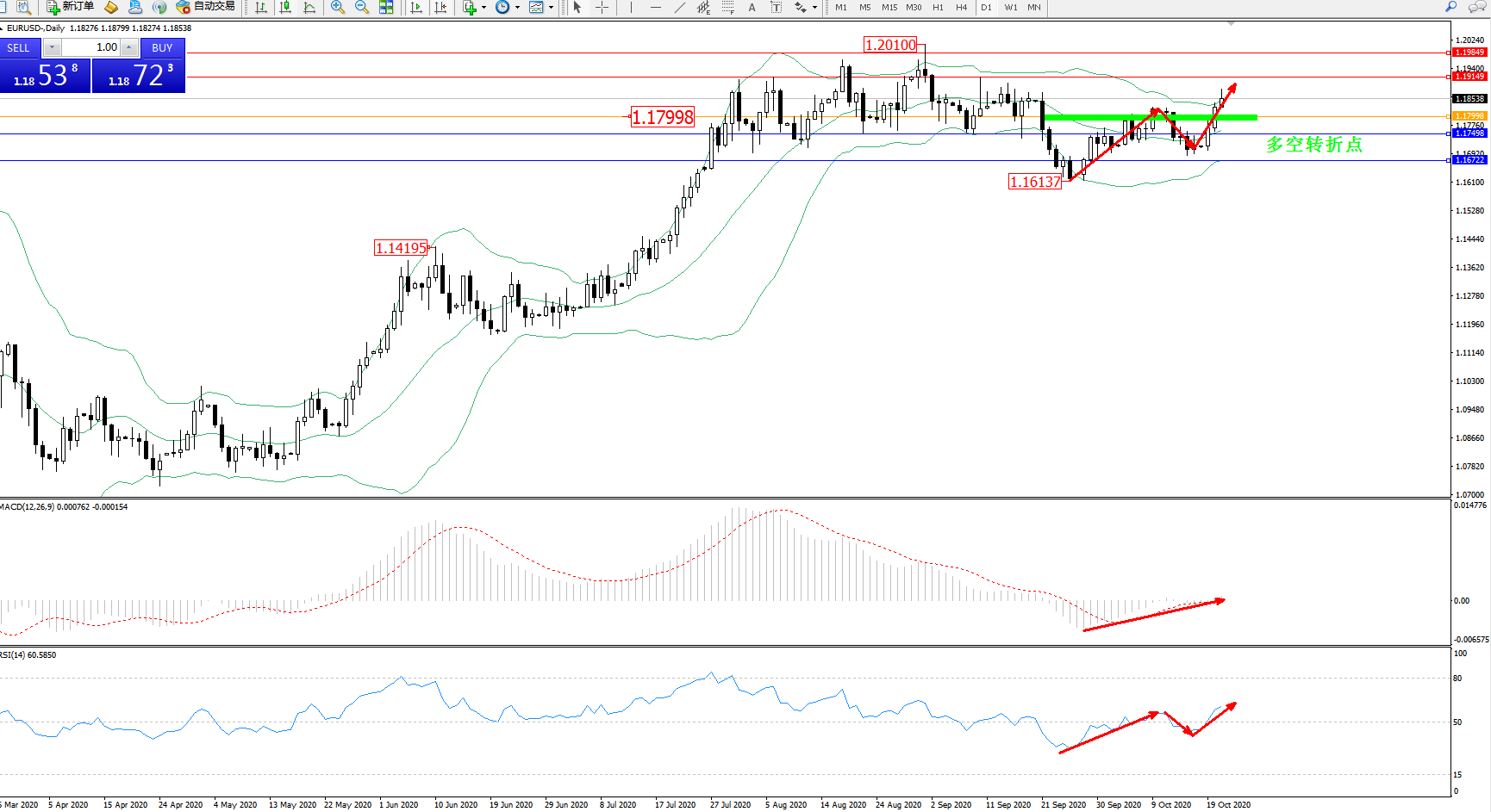 备选策略:1.17998上方看涨,目标1.19149、1.19849