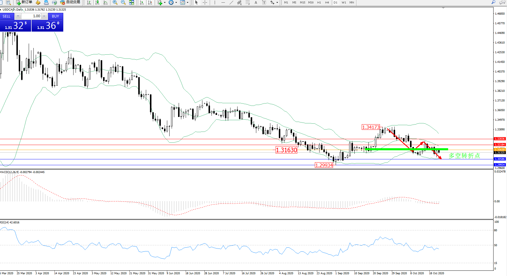 交易策略:1.31630下方看跌,目标1.30586、1.29934