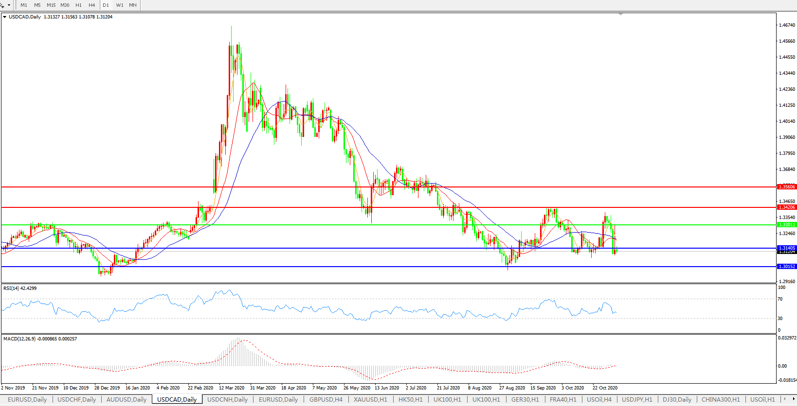 美元兑加元USDCAD    日线图: