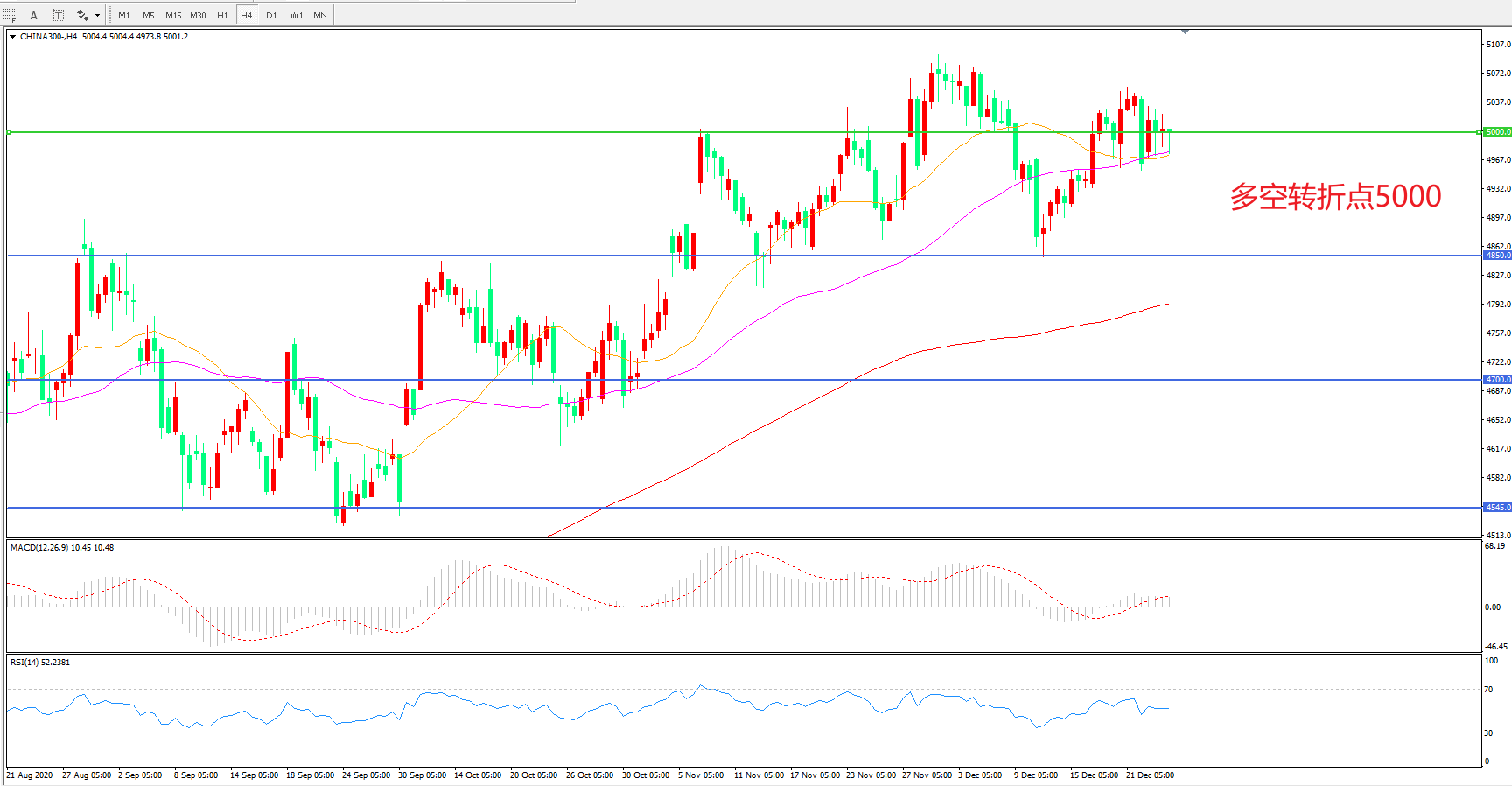 备选策略: 在5000.00之下看跌,目标4850.00 4700.00