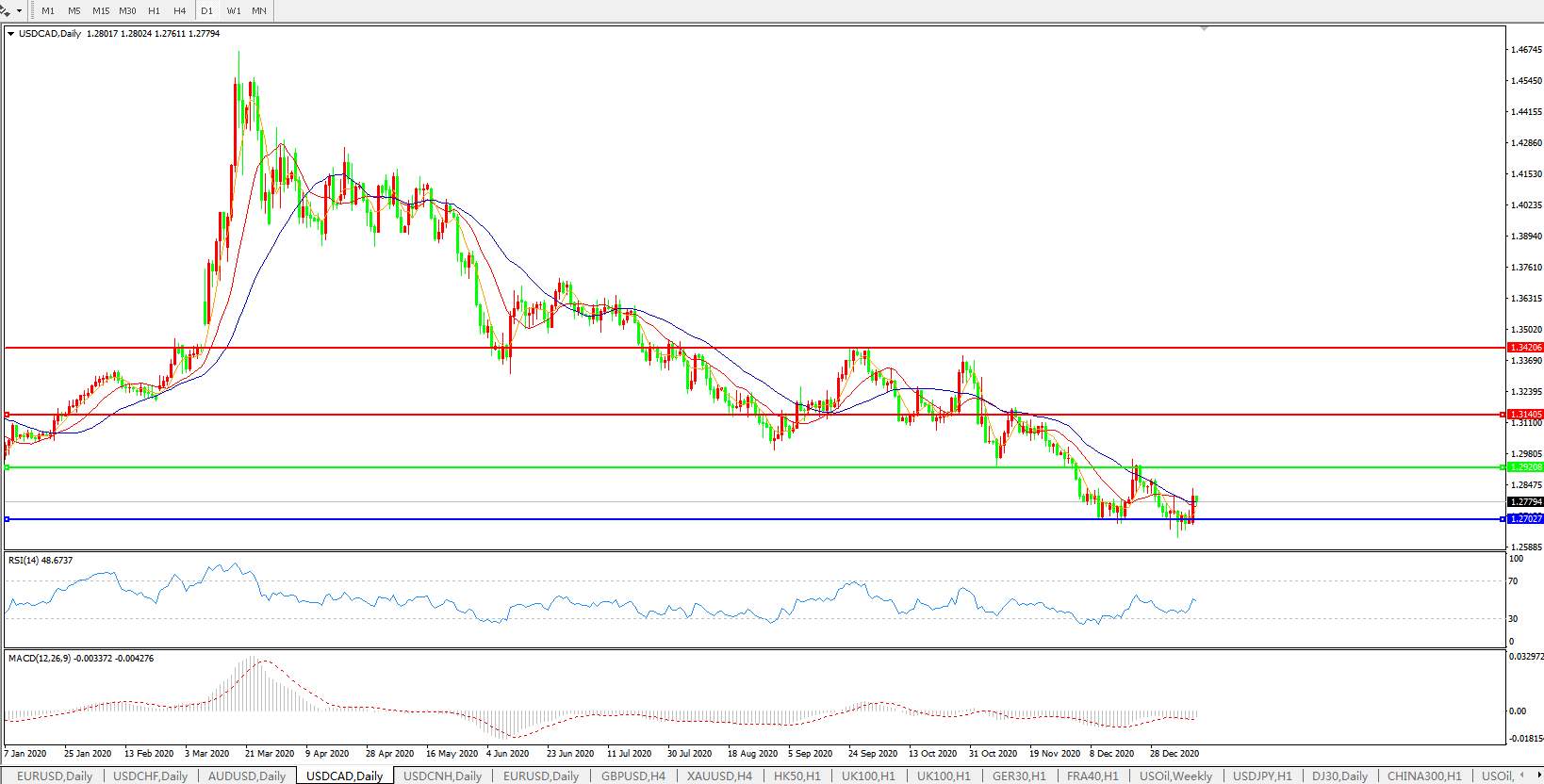 美元兑加元USDCAD    日线图: