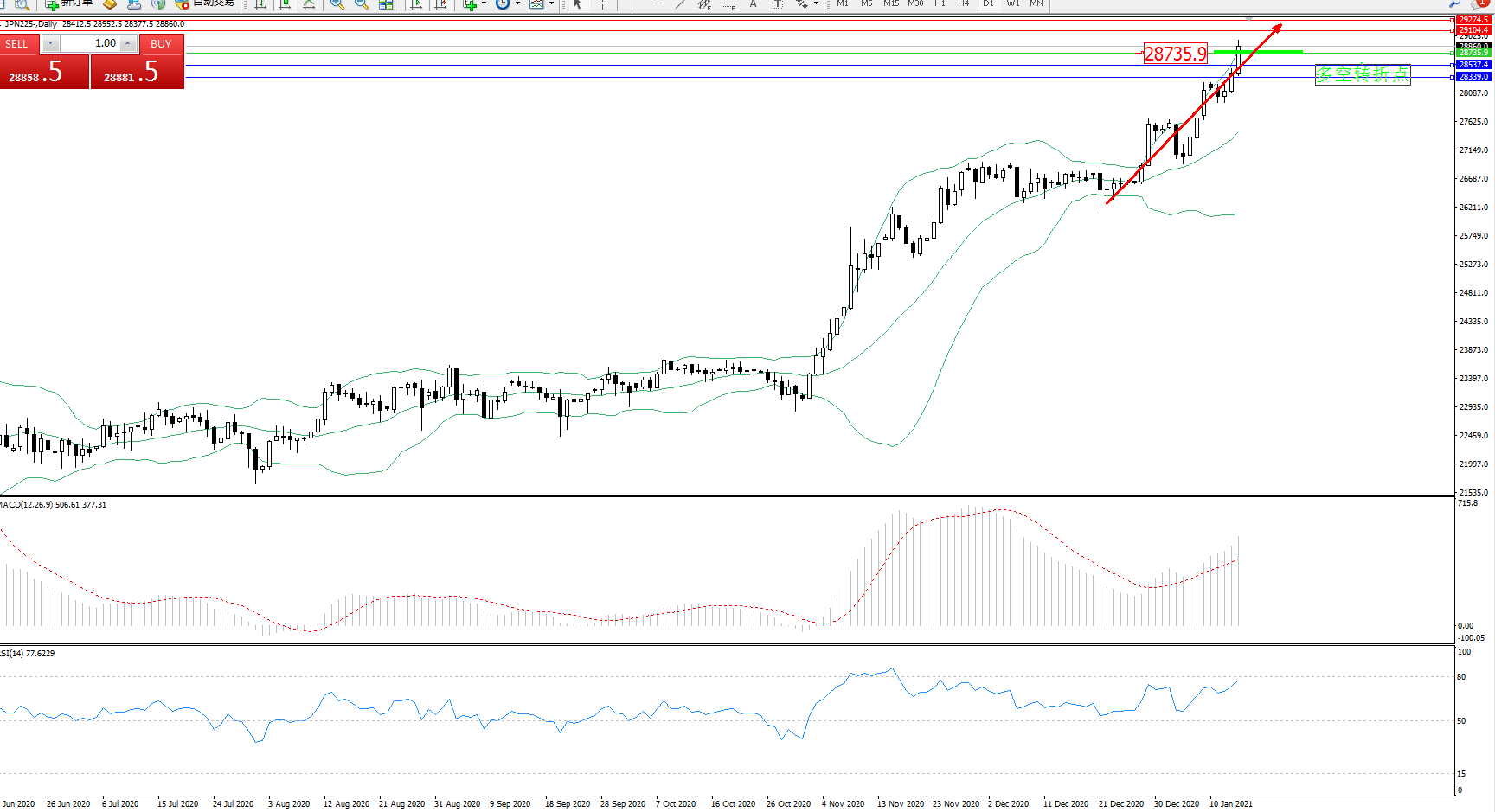 技术点评:多头动力延续布林带指标上轨附近持续震荡上扬态势良好,且屡破新高,未见其止步迹象,布林带指标呈张口走势持续中,不但扩大走势,MACD指标处于多头区域高位持续震荡上扬态势良好,RSI指标处于处于多头区域维持整理上扬至80均衡线下方徘徊中。
