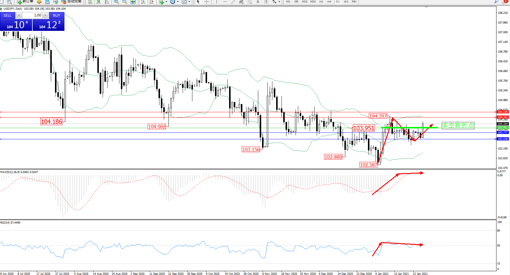 美元兑日圆强势拉升至104.081附近整理,日本央行行长黑田东彦表示,日本央行货币宽松措施的目标是提振经济。央行正购买ETF作为支持经济和价格的一揽子计划的一部分;近期日本央行购买ETF的频率、规模最近有所下降。日本央行将按照全面计划购买ETF以支持经济和价格。目前未有结束日本央行刺激计划包括购买ETF的打算。日本央行持有的ETF的潜在利润目前约为12-13万亿日元。放松货币政策有助于改善劳动力市场;日本受到新冠疫情的严重冲击。虽然感染人数和死亡人数和其他发达国家相比较低,但新冠疫情严重冲击了日本经济:去年二季度日本经济出现负增长,进入三季度后,日本经济出现一定程度的复苏,但由于第二波疫情影响,日本又于几周前宣布紧急状态,又影响了经济复苏的态势。
