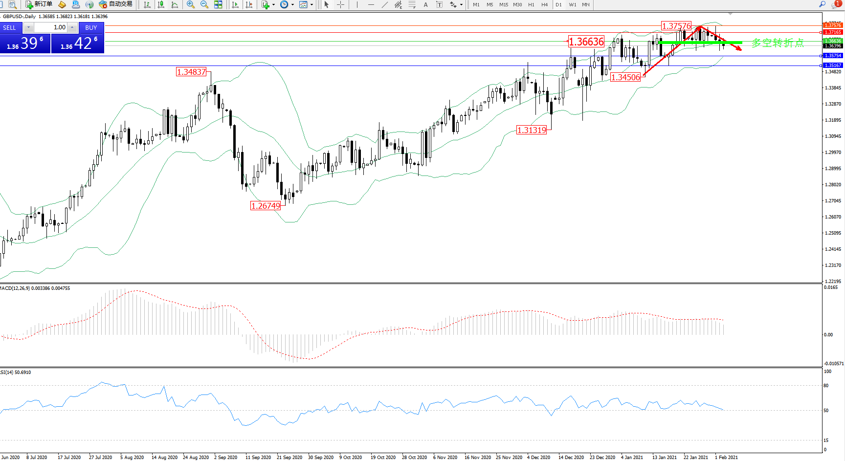 备选策略:1.36636上方看涨,目标1.37165、1.37576