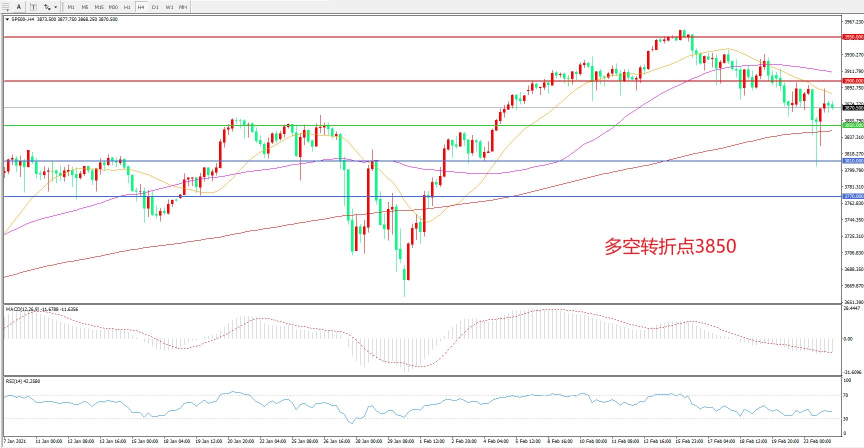 多空转折点:3850.00
