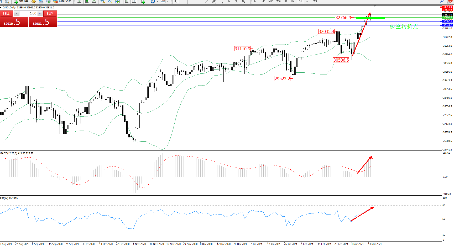 技术点评:多头动力延续布林带指标上轨附近节点持续震荡上扬态势良好,布林带指标呈张口走势持续中,高位多头拉升动力尚未有最终止步迹象,MACD指标处于多头区域强势拉升上扬持续中,RSI指标处于多头区域不断向上移动持续中;