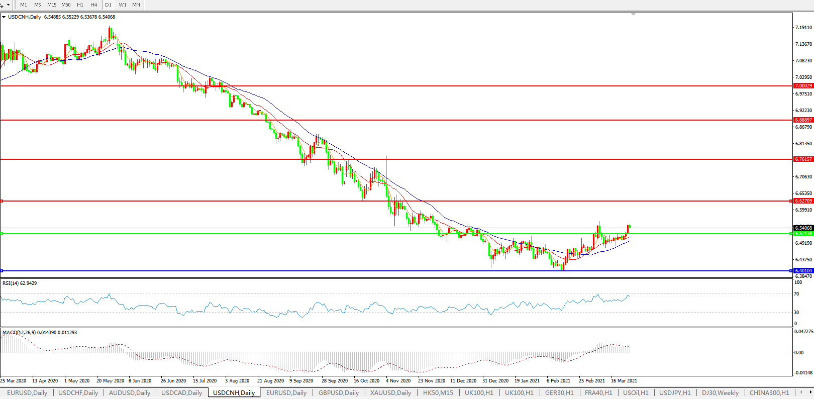 交易策略: 在6.5200之上,看涨,目标价位为6.6300,然后为6.7615。