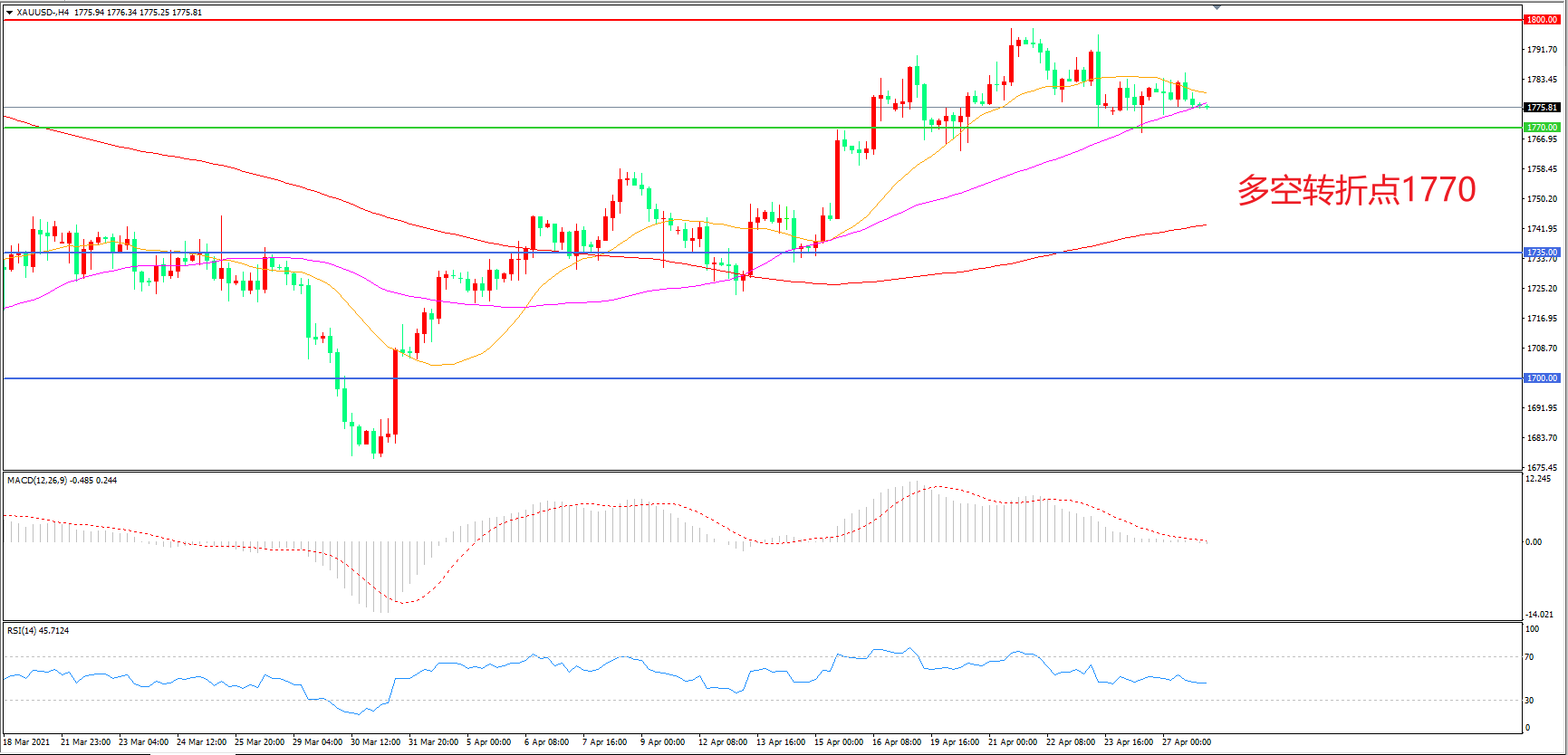 多空转折点:1770.00