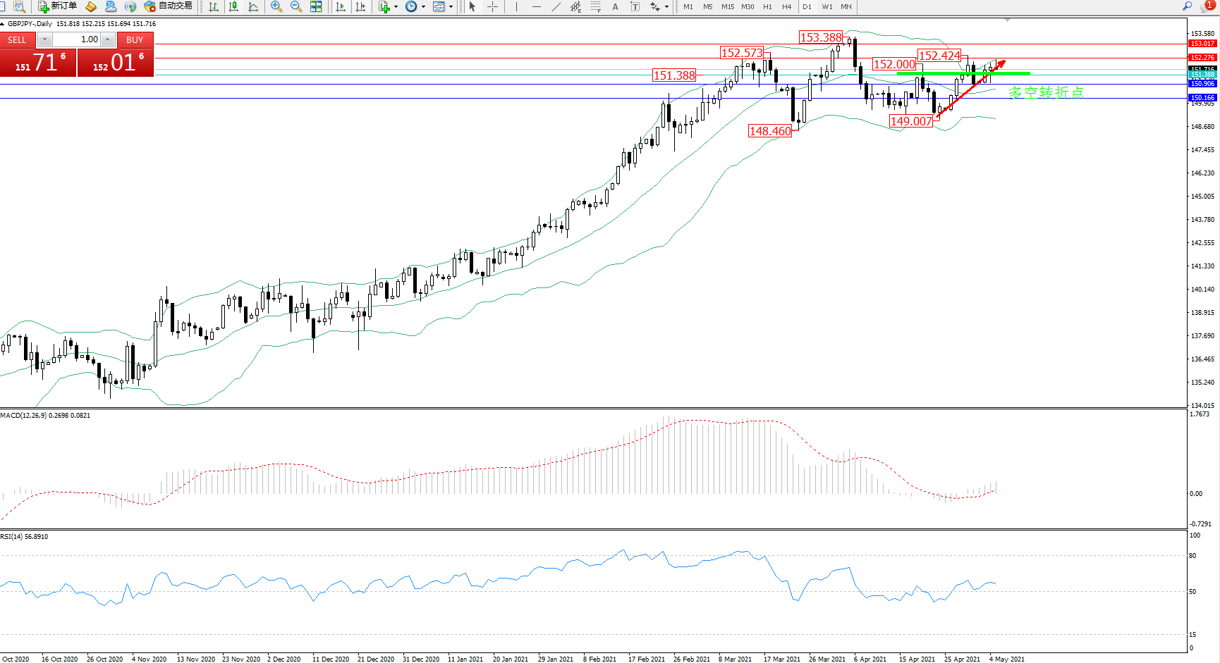 压制位:152.276、153.017