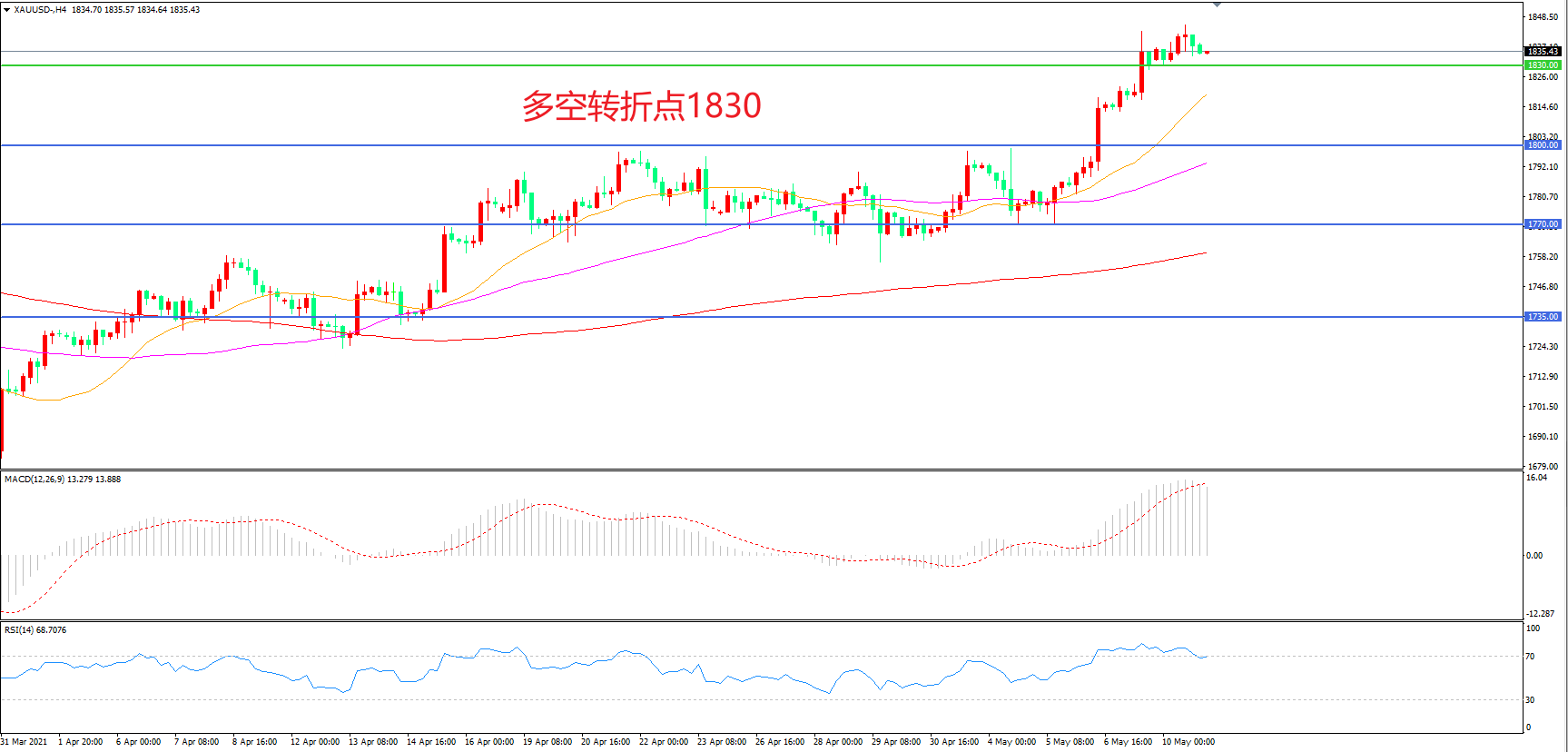 多空转折点:1830.00