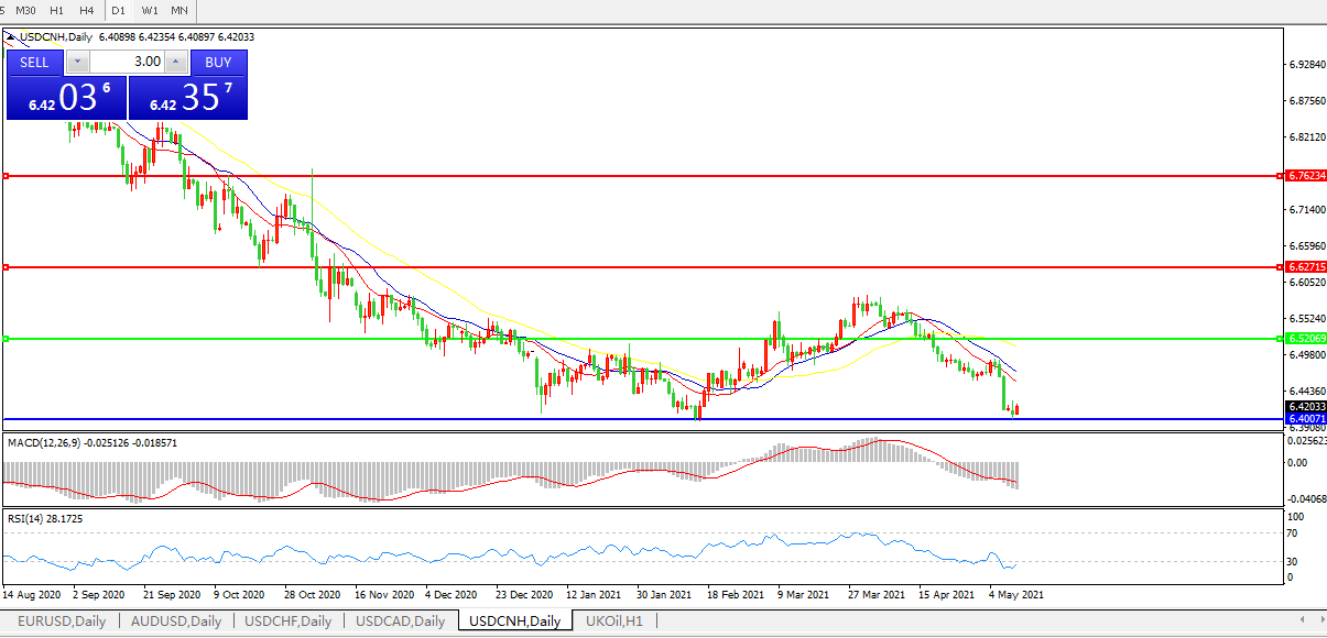 美元兑人民币USDCNH 日线图: