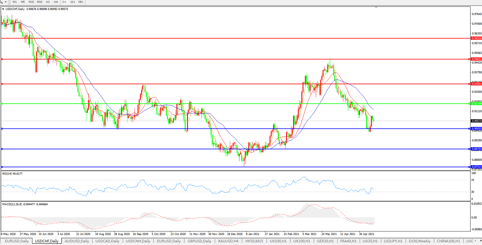 美元兑瑞郎USDCHF    日线图: