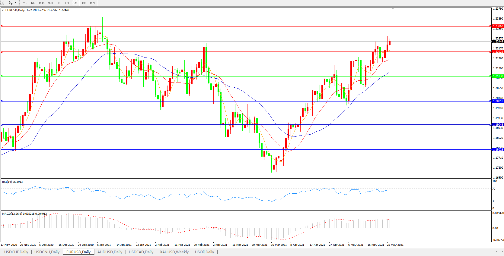 欧元兑美元EURUSD   日线图: