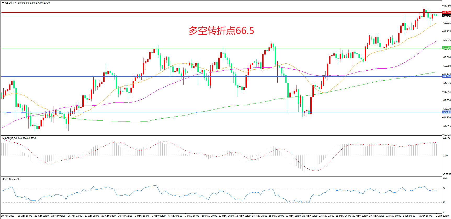 交易策略:在66.50之上看涨,目标69.00    72.00