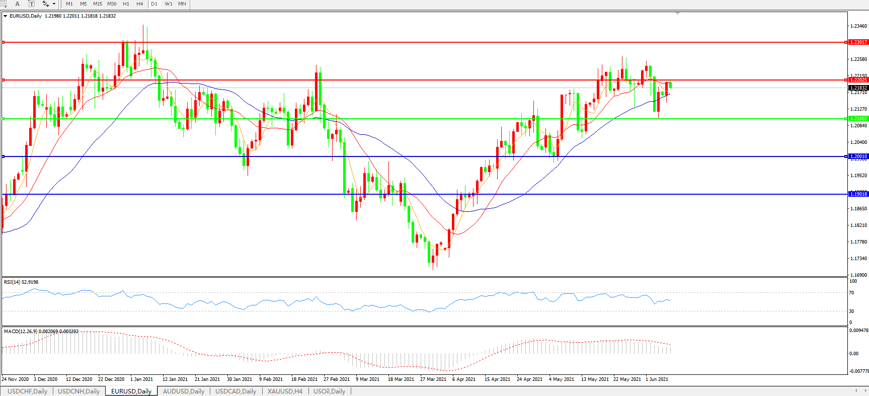 欧元兑美元EURUSD   日线图: