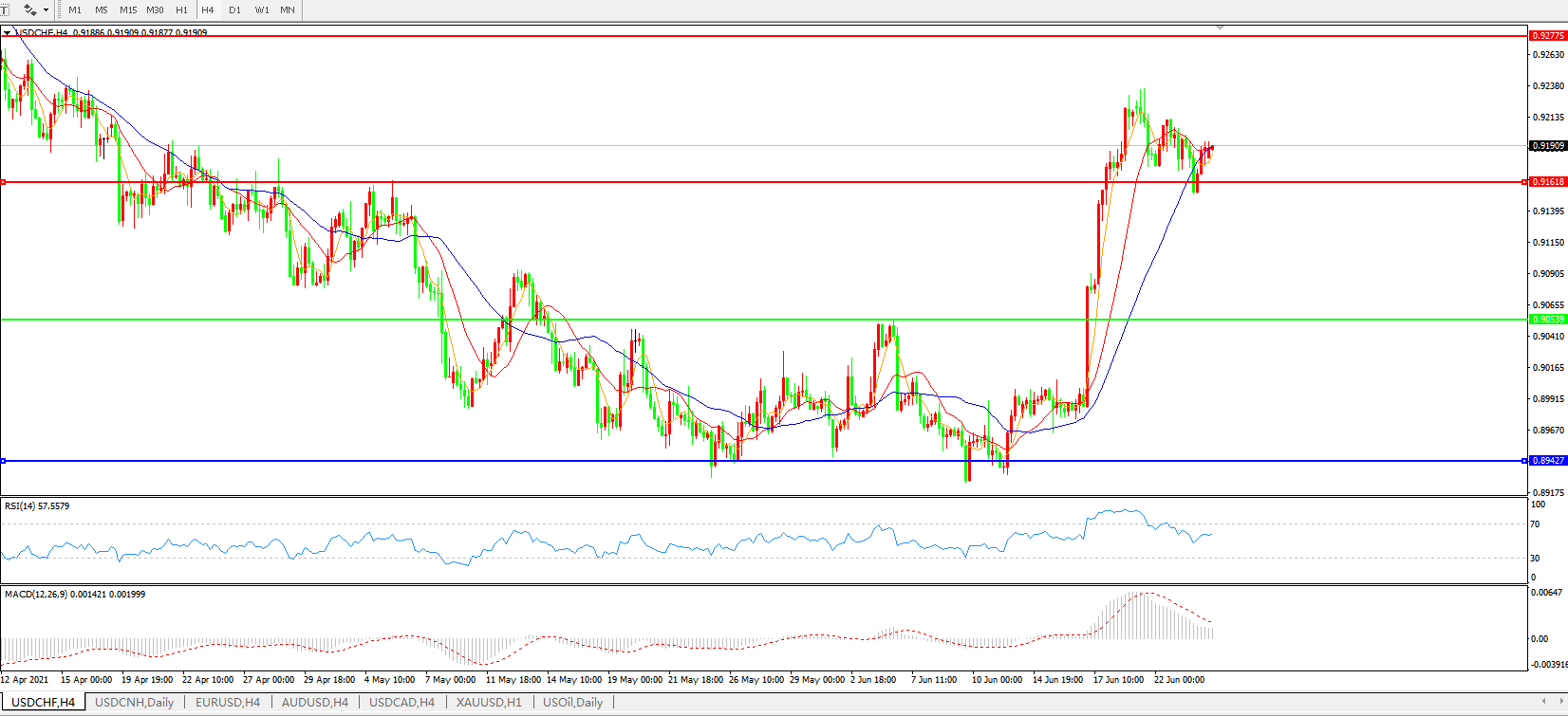 美元兑瑞郎USDCHF    4小时图: