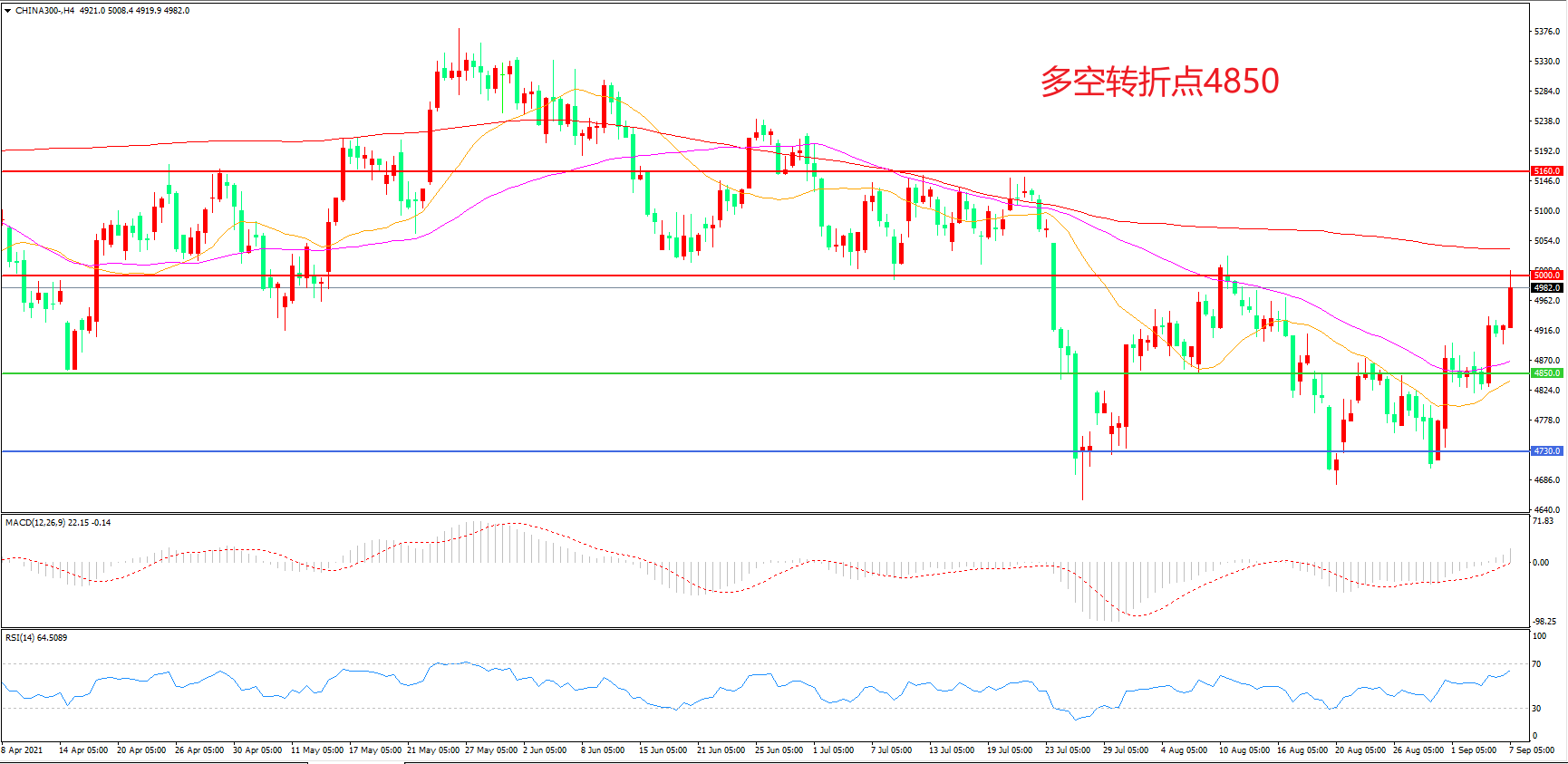 多空转折点:4850.00
