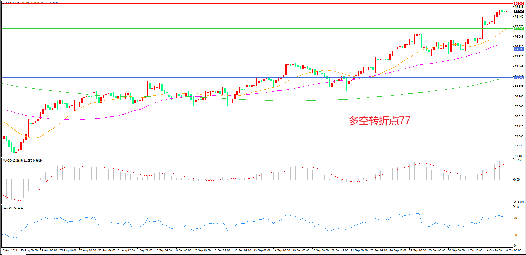交易策略:在77.00之上看涨,目标80.00 83.00