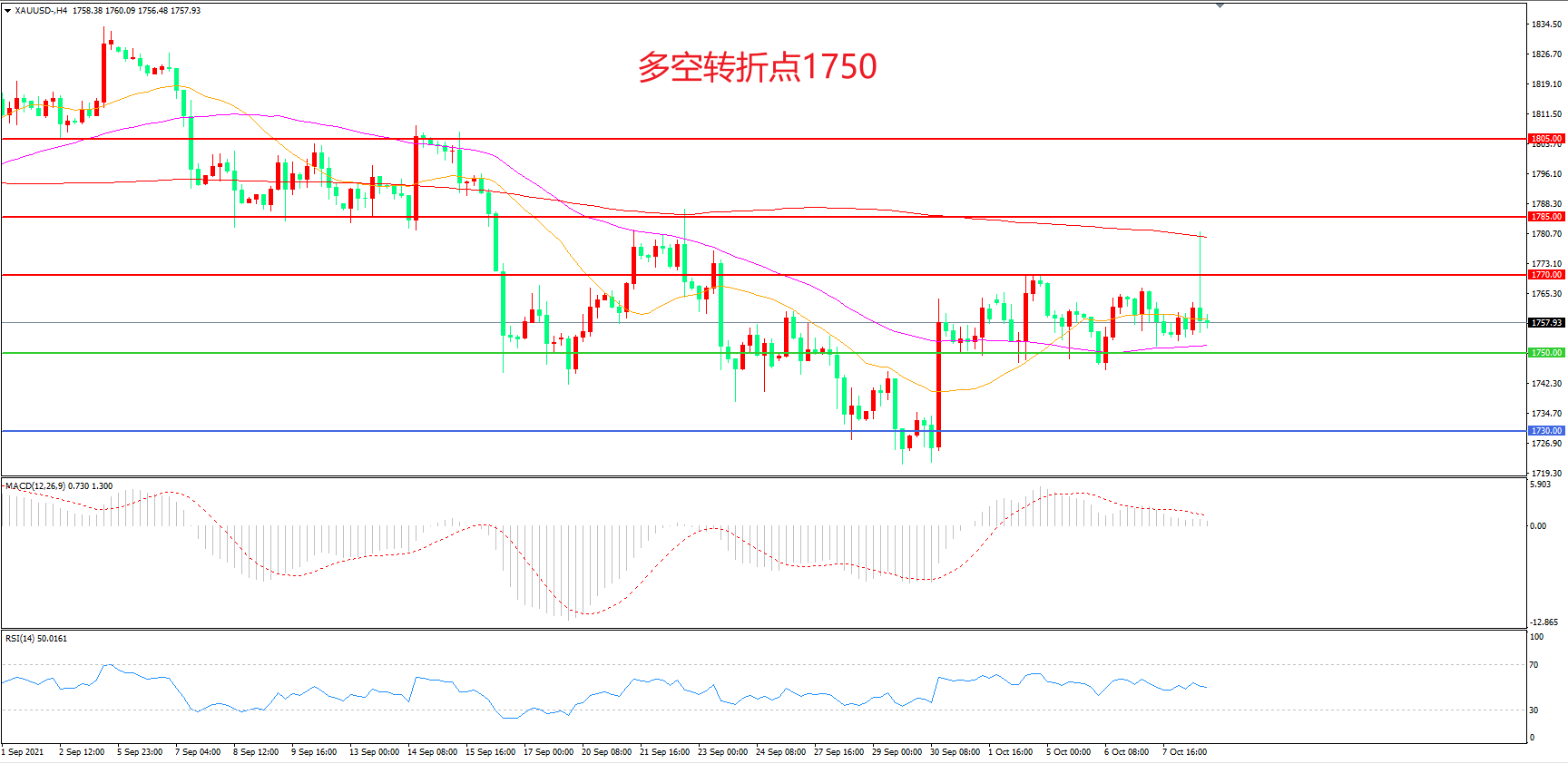 多空转折点:1750.00