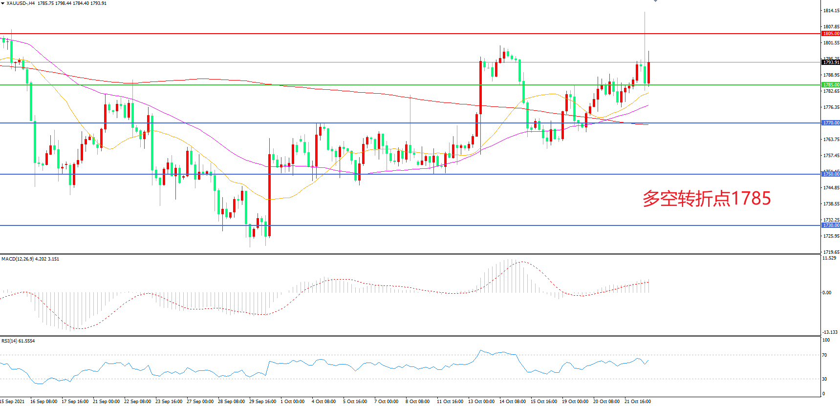 多空转折点:1785.00