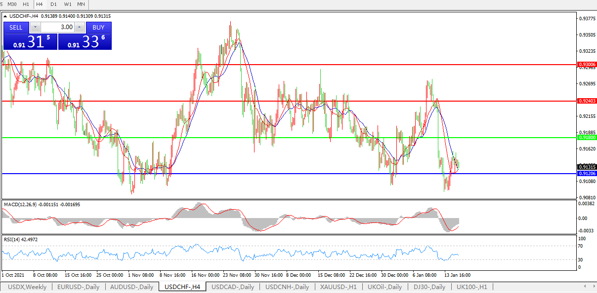 美元兑瑞郎USDCHF    4小时图: