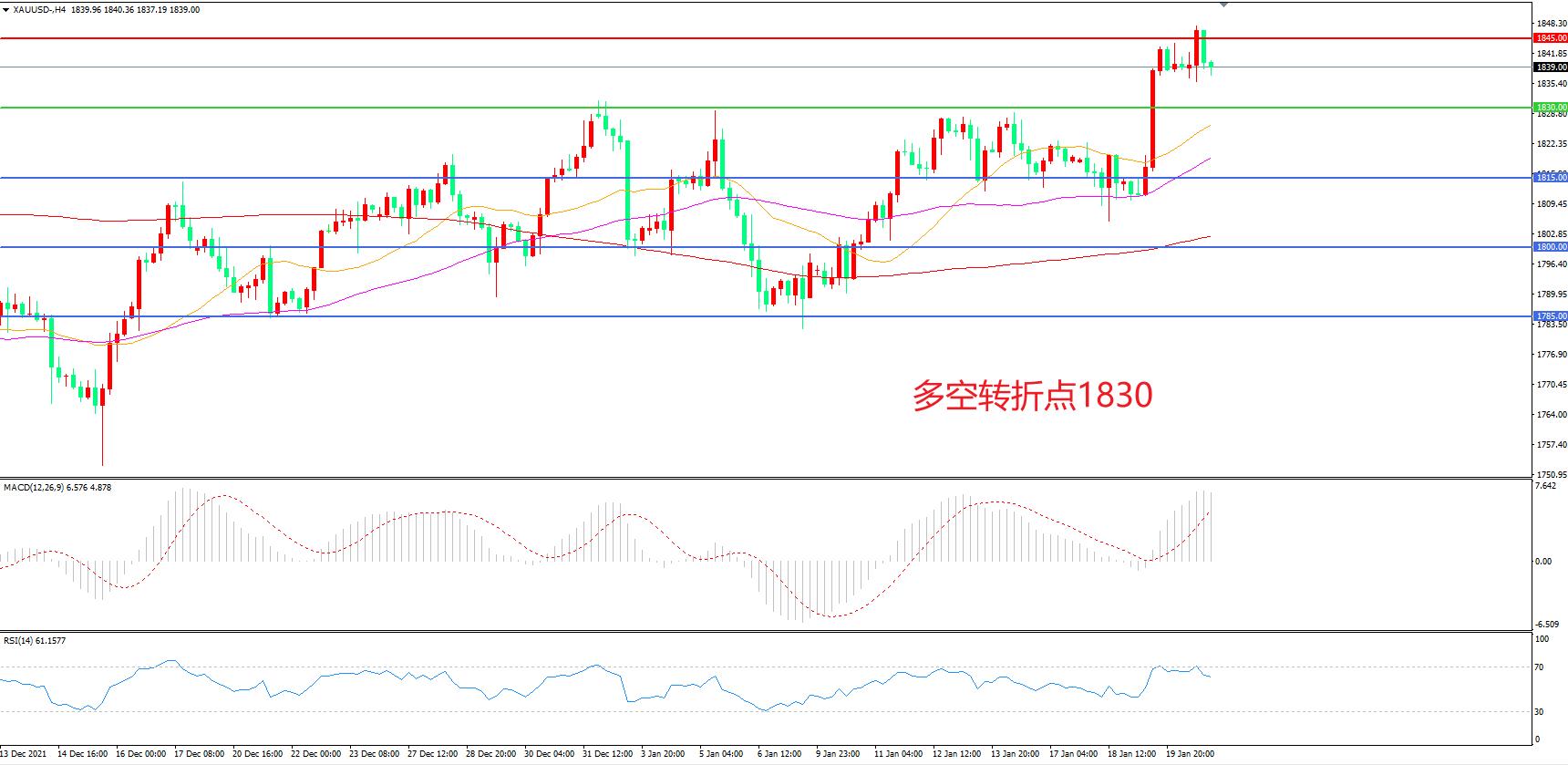 交易策略:在1830.00之上看涨,目标1845.00 1860.00