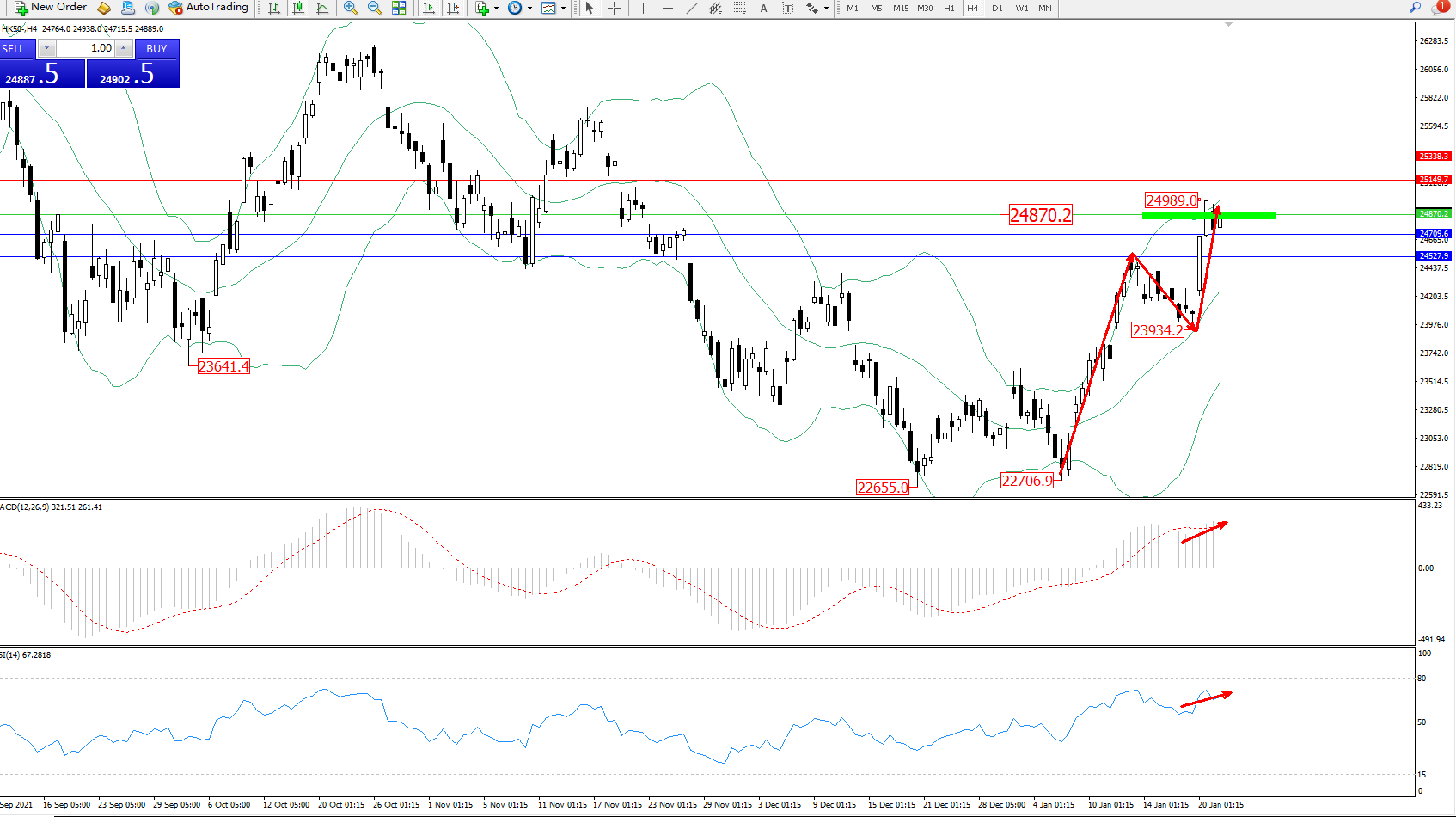 恒指HK50 ——4小时K线图显示: