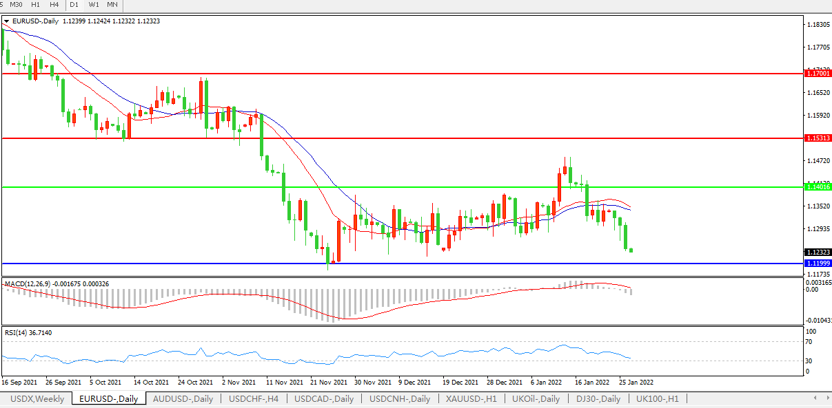 交易策略:1.1400下方看跌,目标1.1200、1.1000