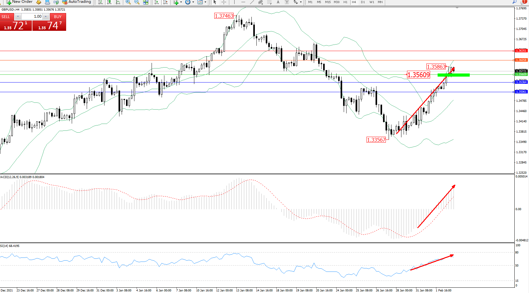 交易策略:1.35609上方看涨,目标1.36058、1.36351