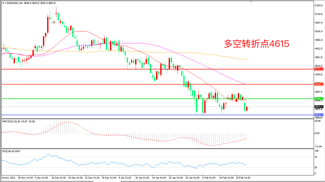 交易策略:在4615.00之下看跌,目标4520.00                4450.00
