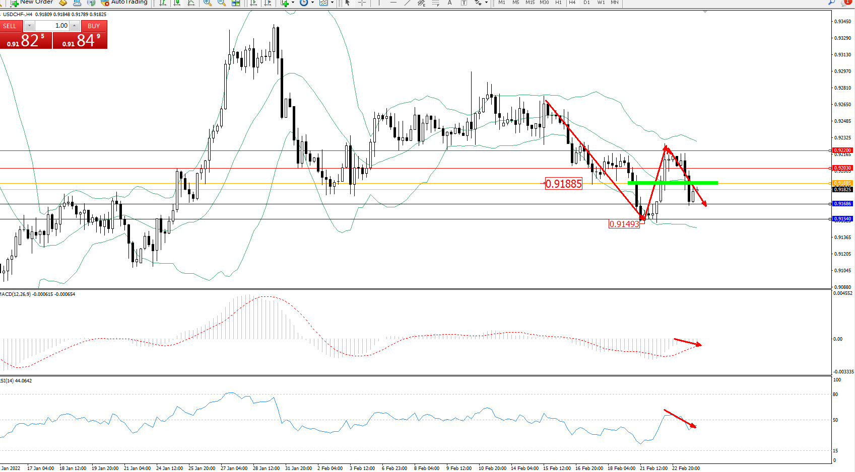 美元瑞郎USDCHF——4小时K线图显示: