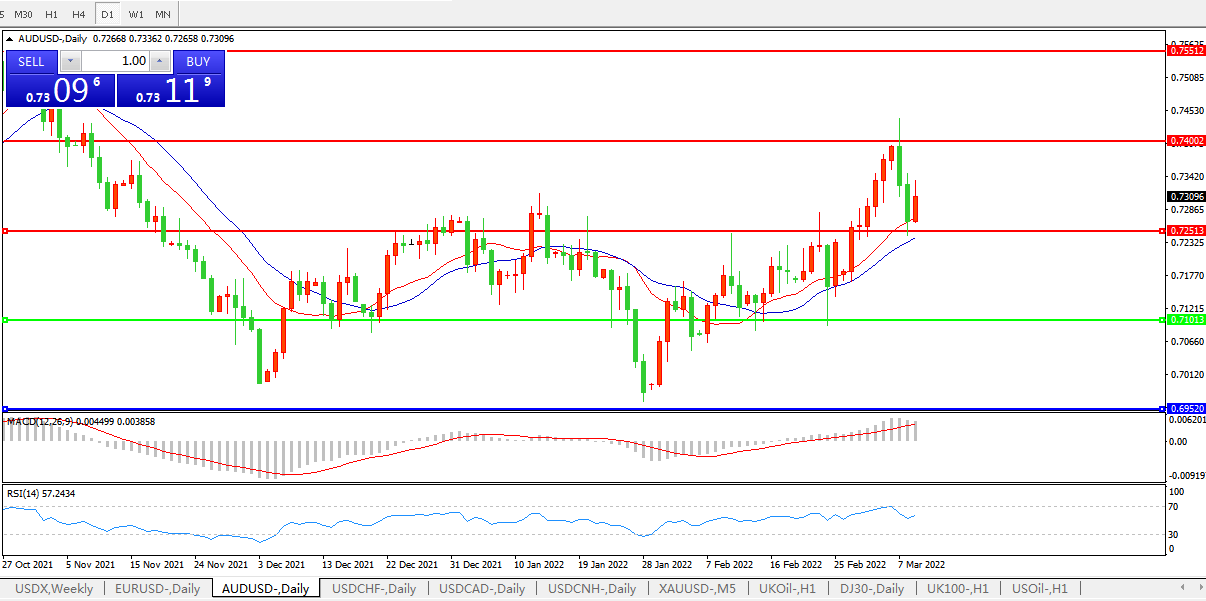 压制位:0.7250 0.7400