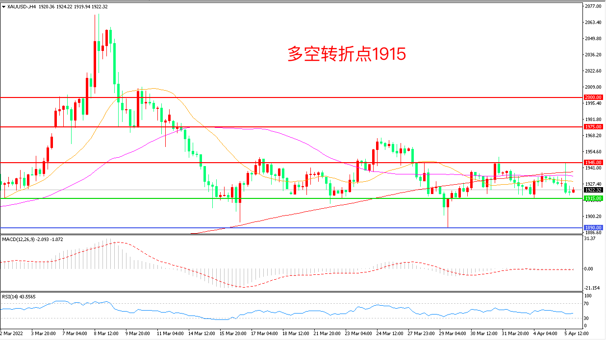 备选策略:在1915.00之下看跌,目标1890.00 1865.00