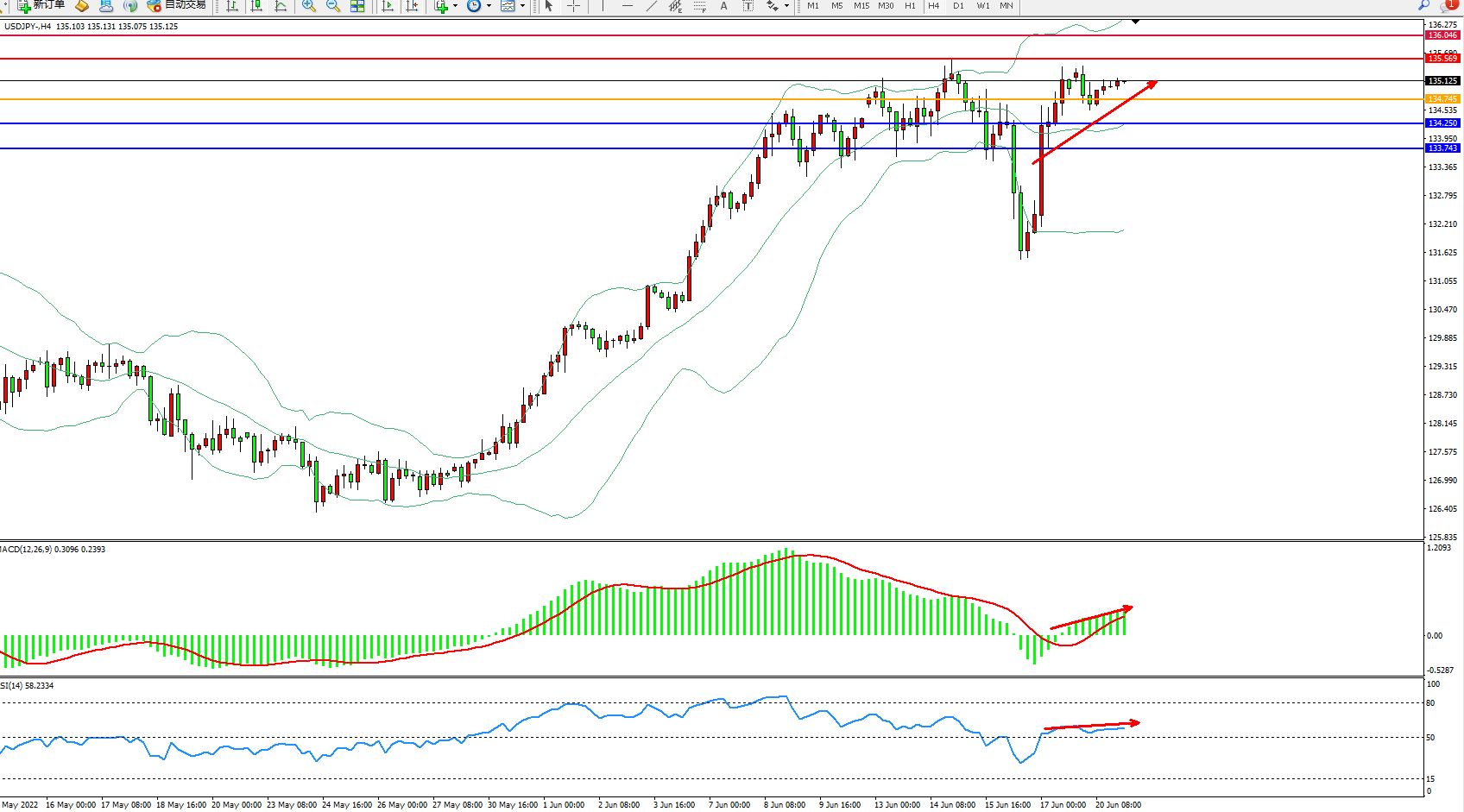 交易策略:134.745上方看涨,目标135.569、136.046