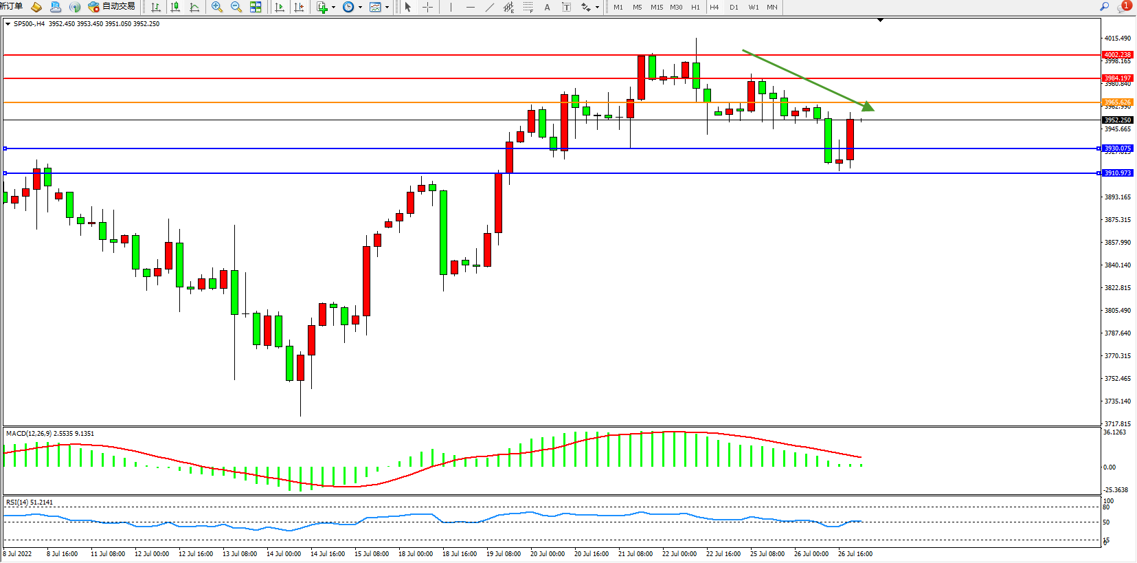 标普SP500——4小时K线图显示: