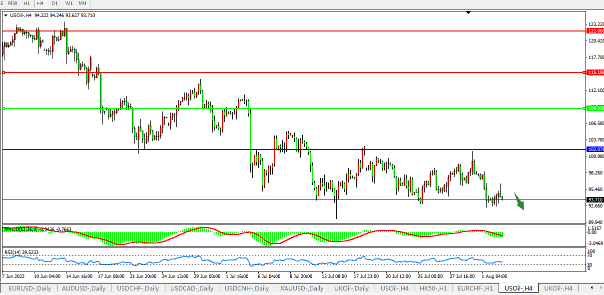美国原油USOil   4小时图