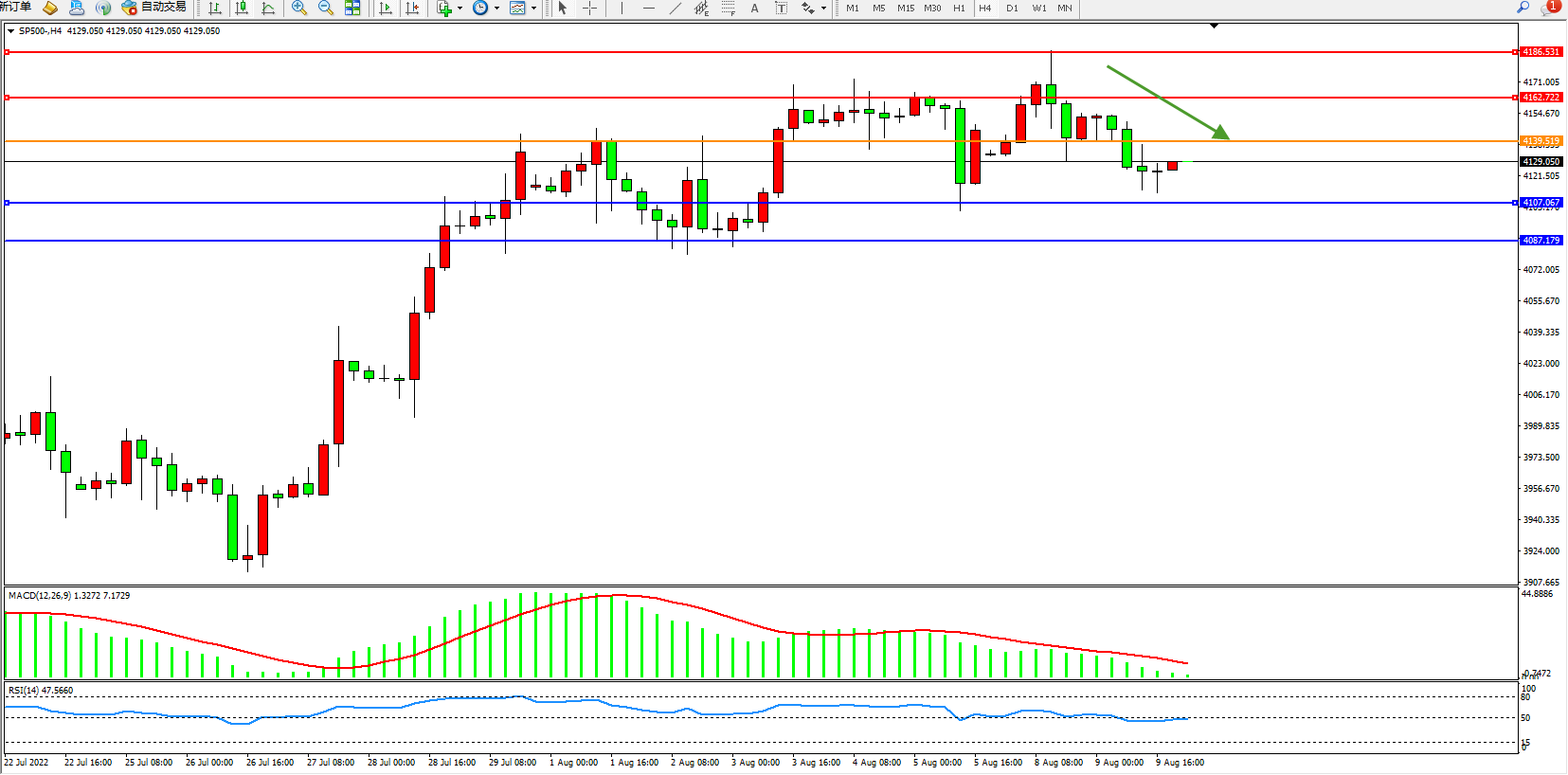 标普SP500——4小时K线图显示: