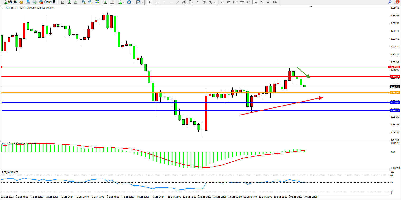 美元瑞郎USDCHF——4小时K线图显示: