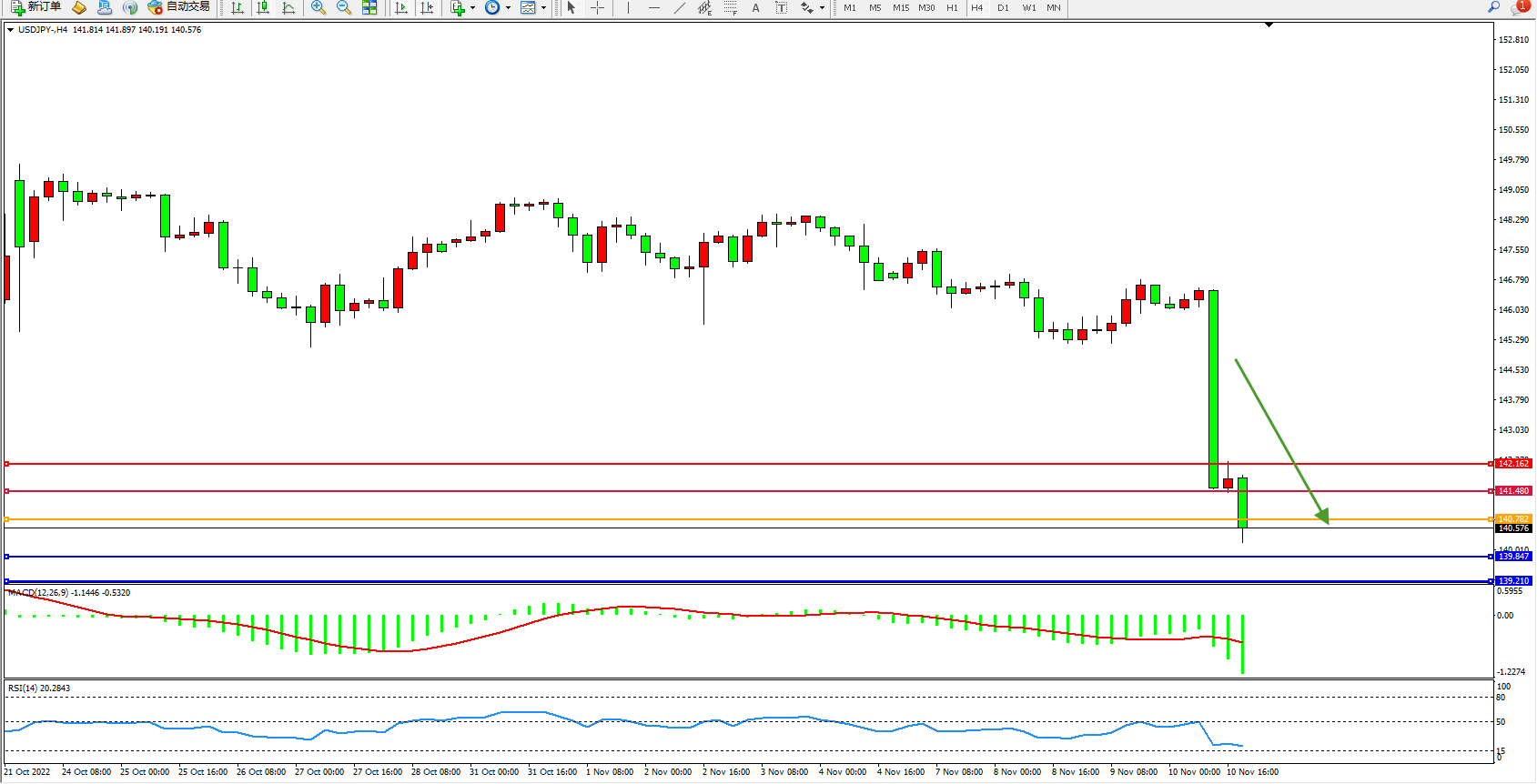 交易策略:140.782下方看跌,目标139.847、139.210