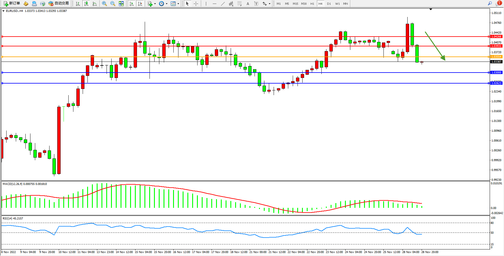 交易策略:1.03554下方看跌,目标1.03000、1.02623