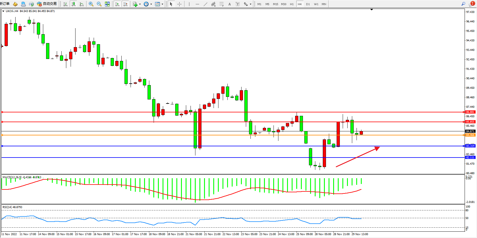 布油UKOil——4小时K线图显示: