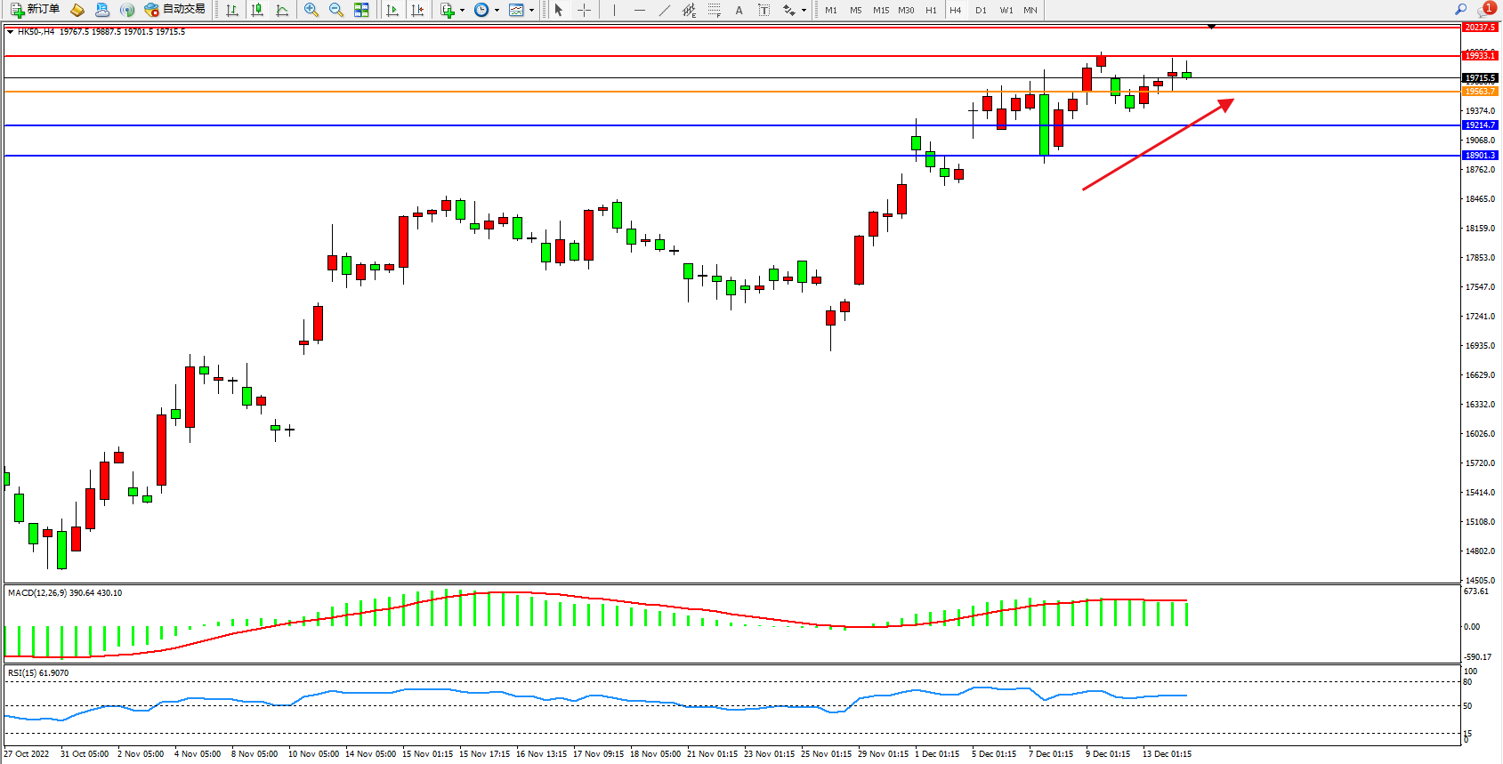 恒指HK50 4小时图