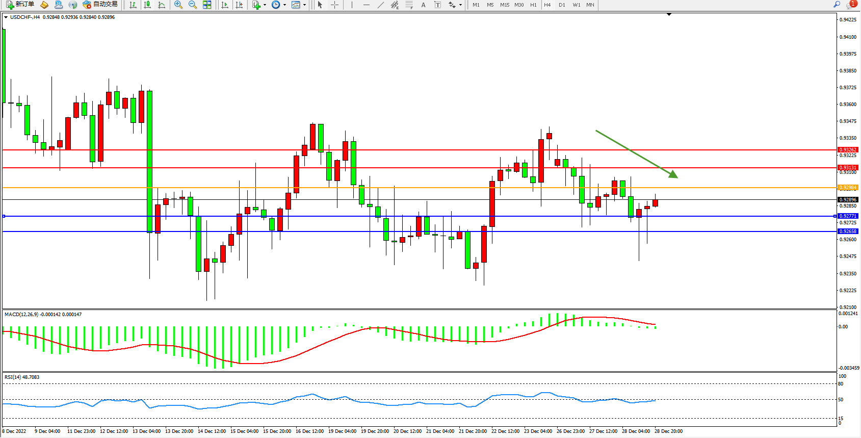 USDCHF:震荡下移 USDCHF  XAUUSD