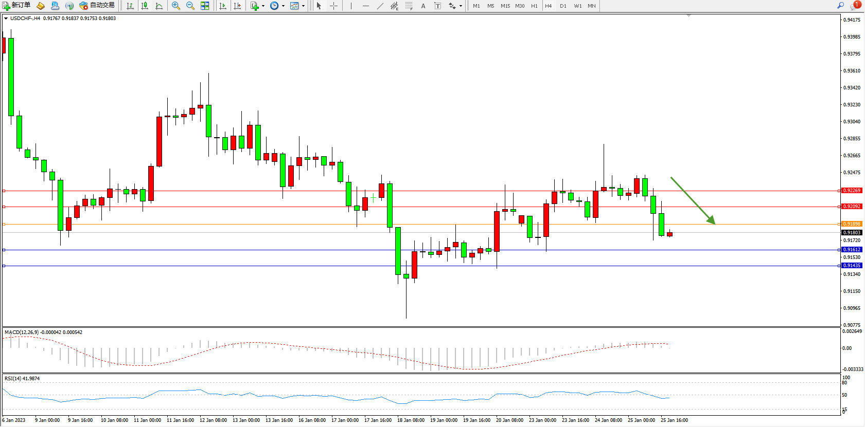 美元瑞郎USDCHF——4小时K线图显示: